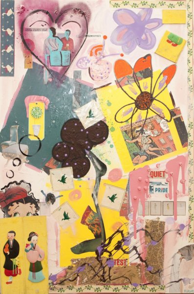 collage, acrylic, spray paint on canvas / 24" x 36" / 2008