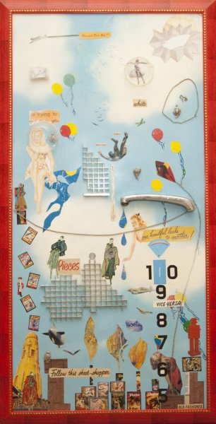 mixed media, spray paint on wood / 26 ½”x 50 ½” framed / 2007