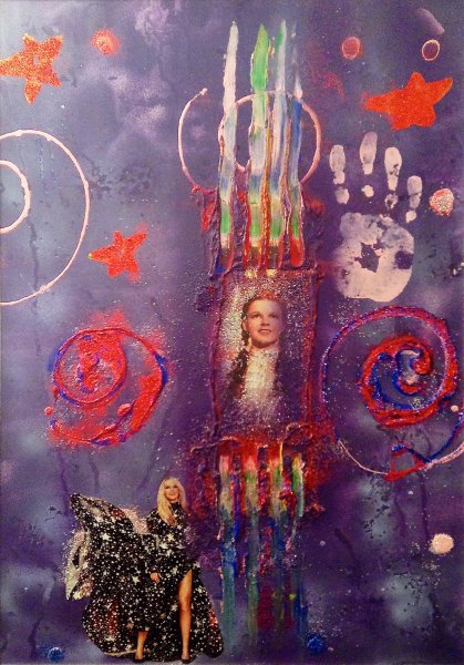 spray paint, acrylic, glitter, collage on canvas. framed. / 30" x 36" / 2011